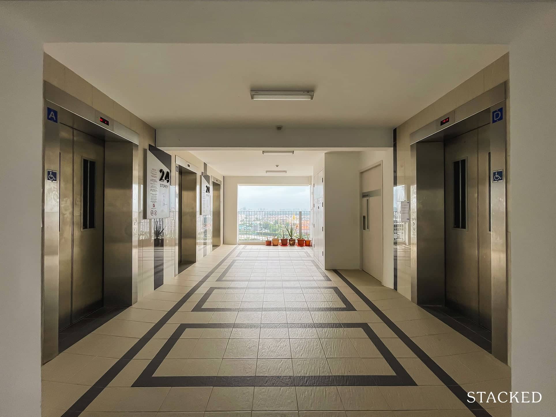 The lift lobby area has three to four lifts servicing five – 10 units, depending on the block. It is very spacious, modern, and nothing out of the ordinary. Considering it’s only up to 27 storeys high, we don’t anticipate the wait times to be too long here.