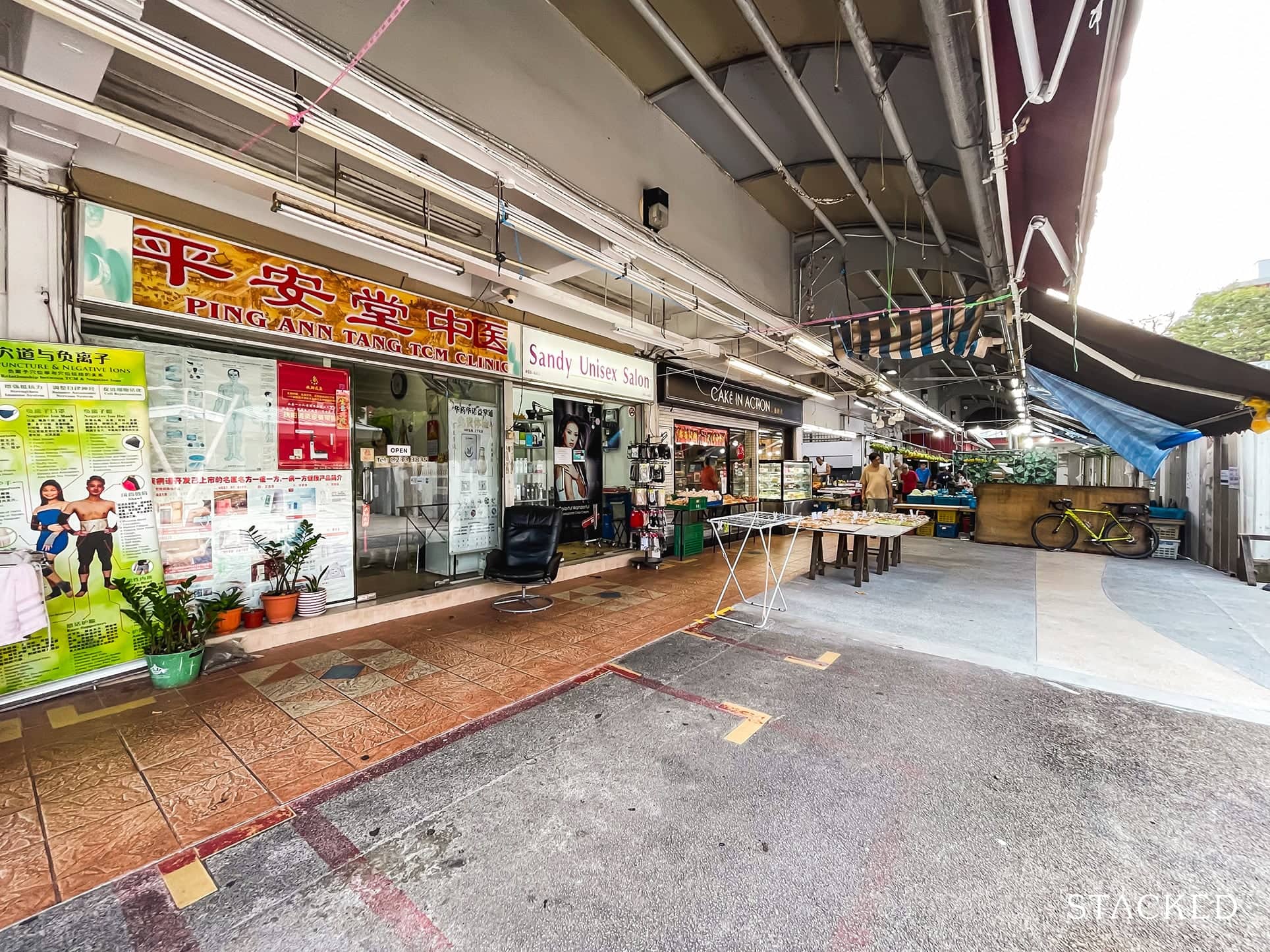 The area also houses a supermarket, a wet market, and several miscellaneous shops for basic necessities.