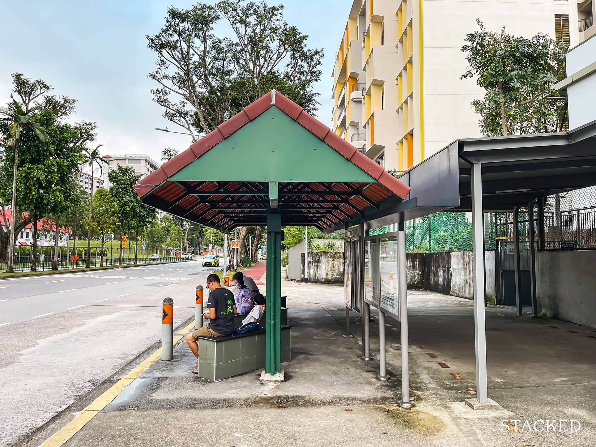 The second drop-off point is quite similar, except for the bench seating that faces the roundabout instead. It’s very spacious and well-ventilated, making it a comfortable waiting area.