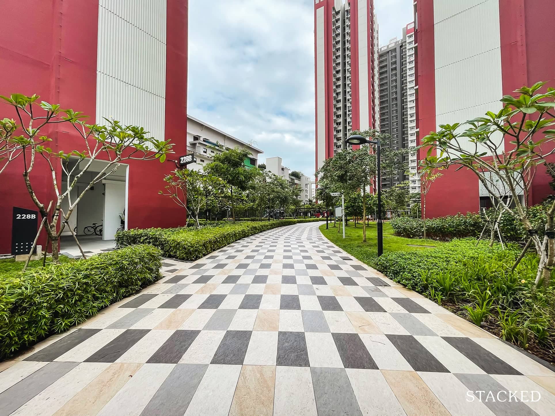 Heading in, you’ll find that there are two drop-off points in the development, one between blocks 228A and 228B, and the second at block 228, where the precinct pavilion is located.