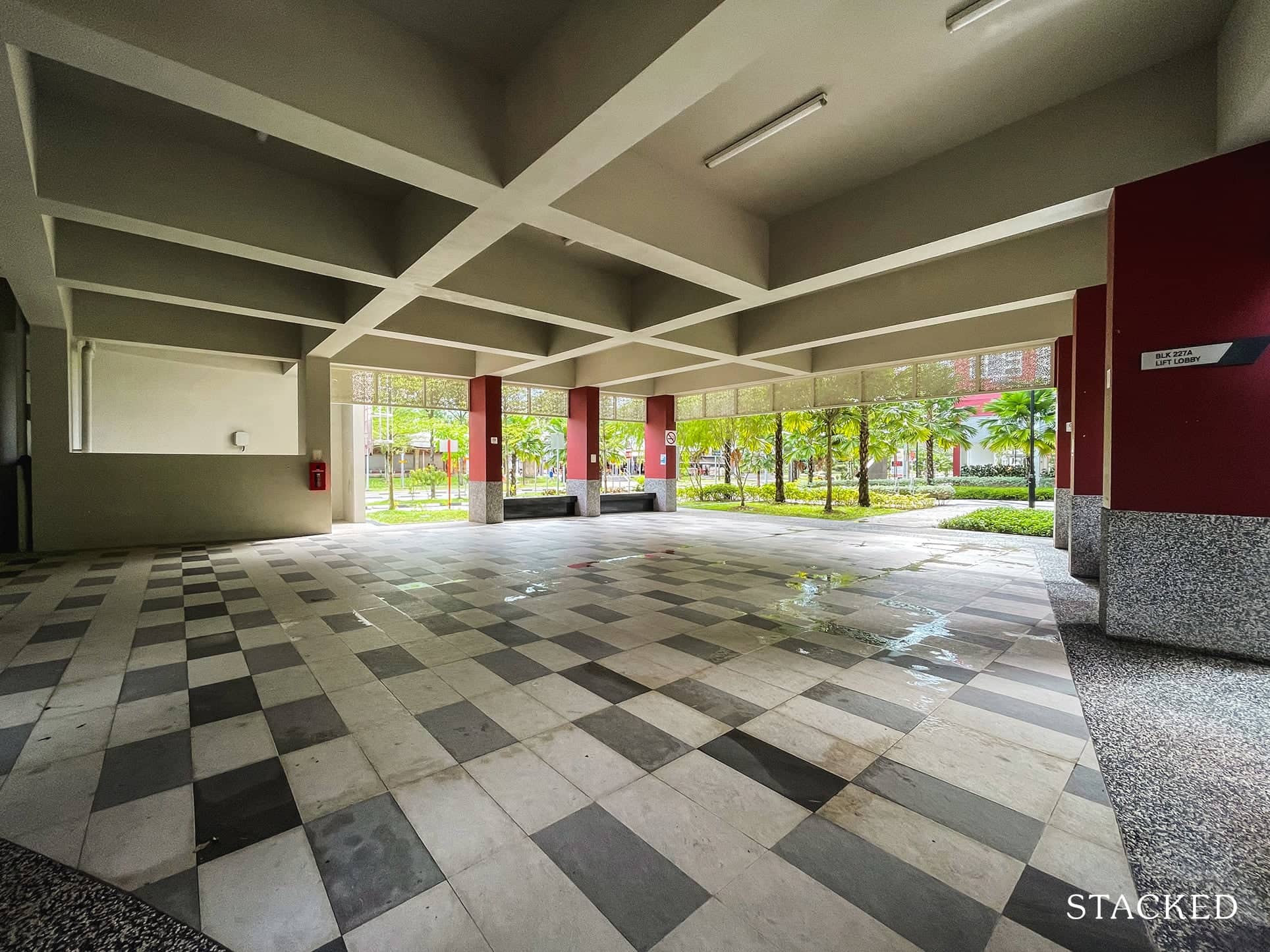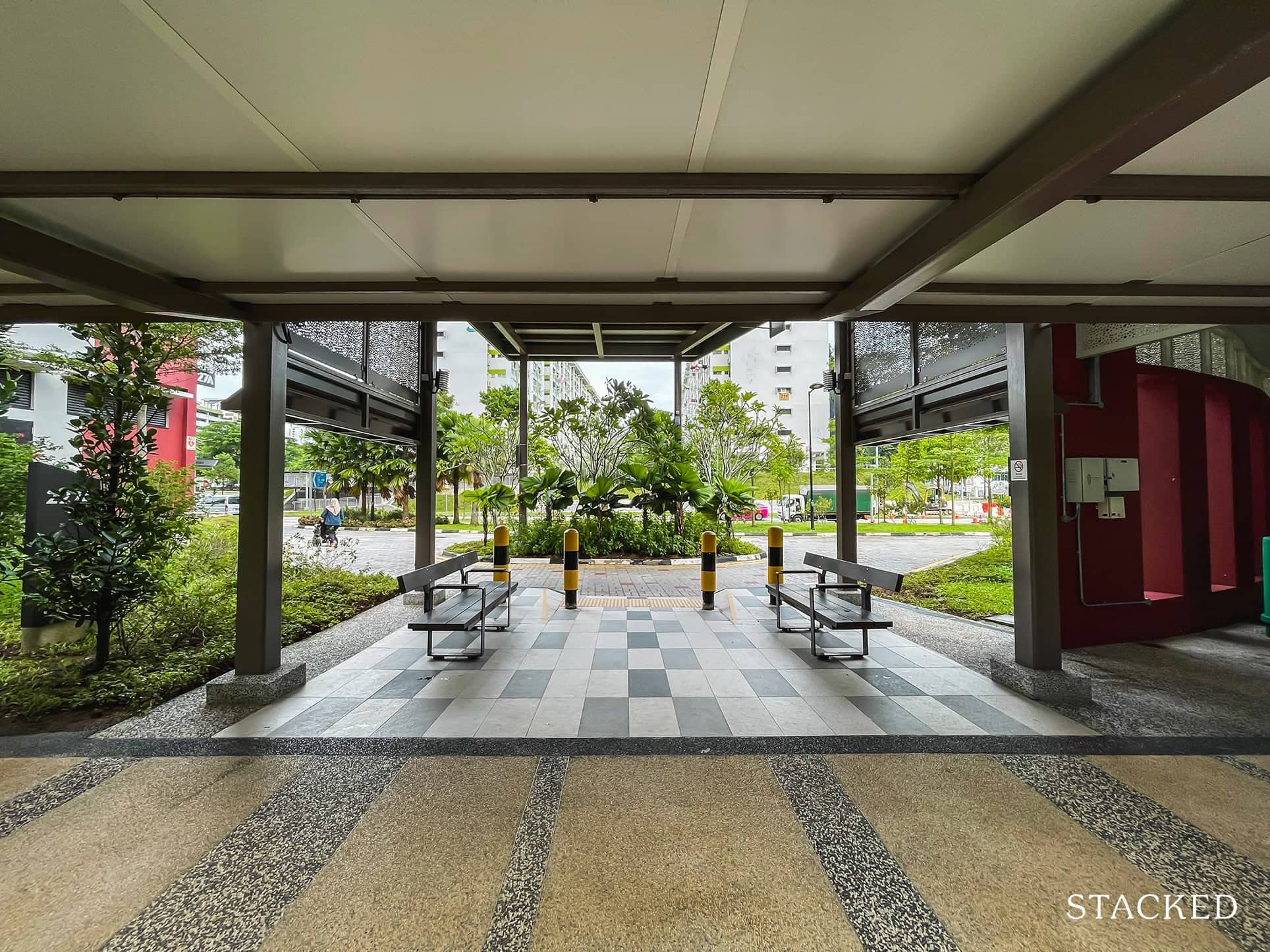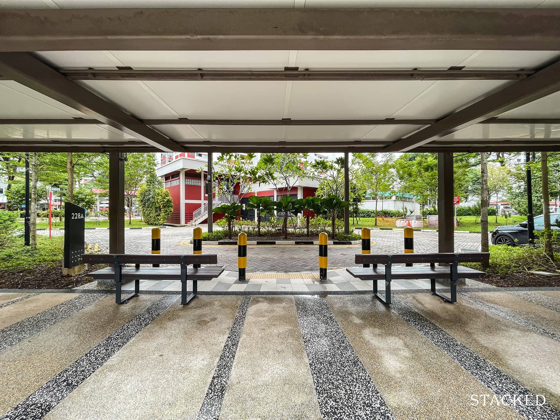 But what’s even better is that the drop-off point between blocks 228A and 228B also has a sheltered walkway to the shops and eateries across the street! That’s really convenient, especially with the kind of weather we are having.