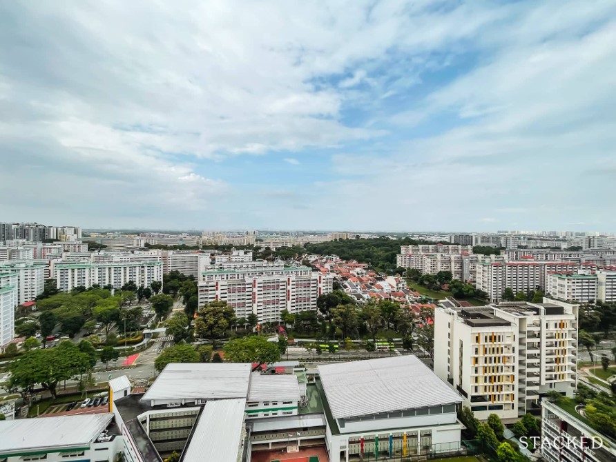 North-facing units from levels 11 and above can overlook the low-rise Ang Mo Kio Primary to see all the way to Sembawang/Malaysia.
