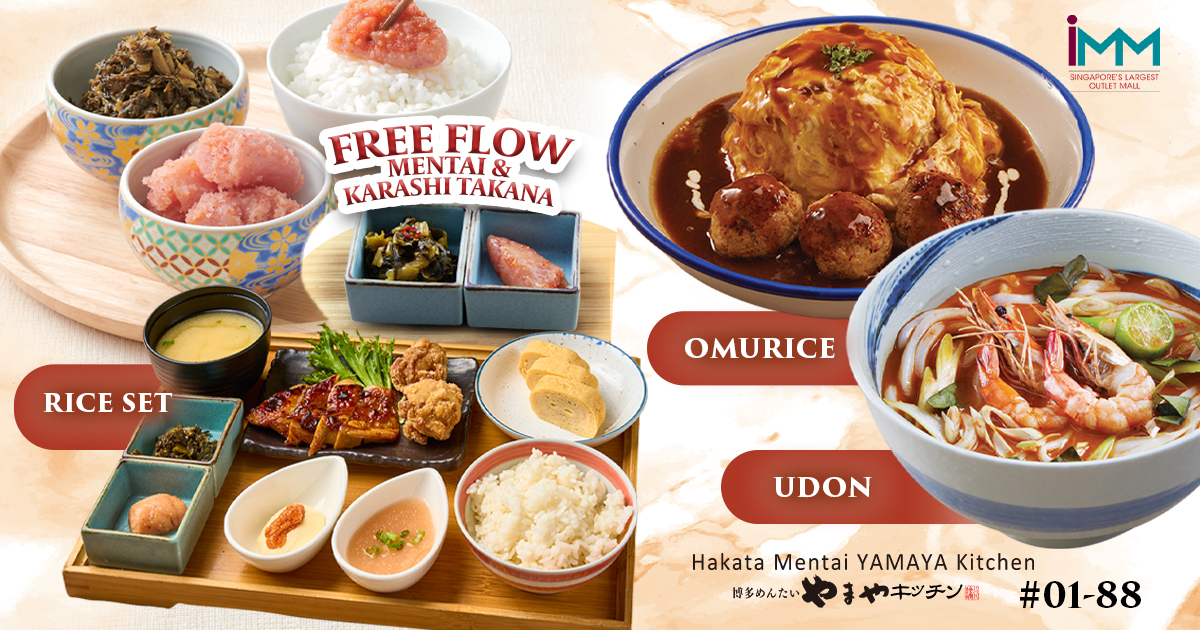 If you've worked up a big appetite from all that shopping - good news. Yamaya Kitchen (#01-88) is serving up free flow Mentai and Karashi Takana with purchase of any main dishes!