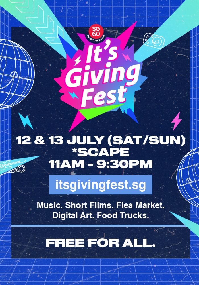 Another free SG60 event is It's Giving Fest, a music, arts and community festival taking place at *Scape on July 12 and 13.