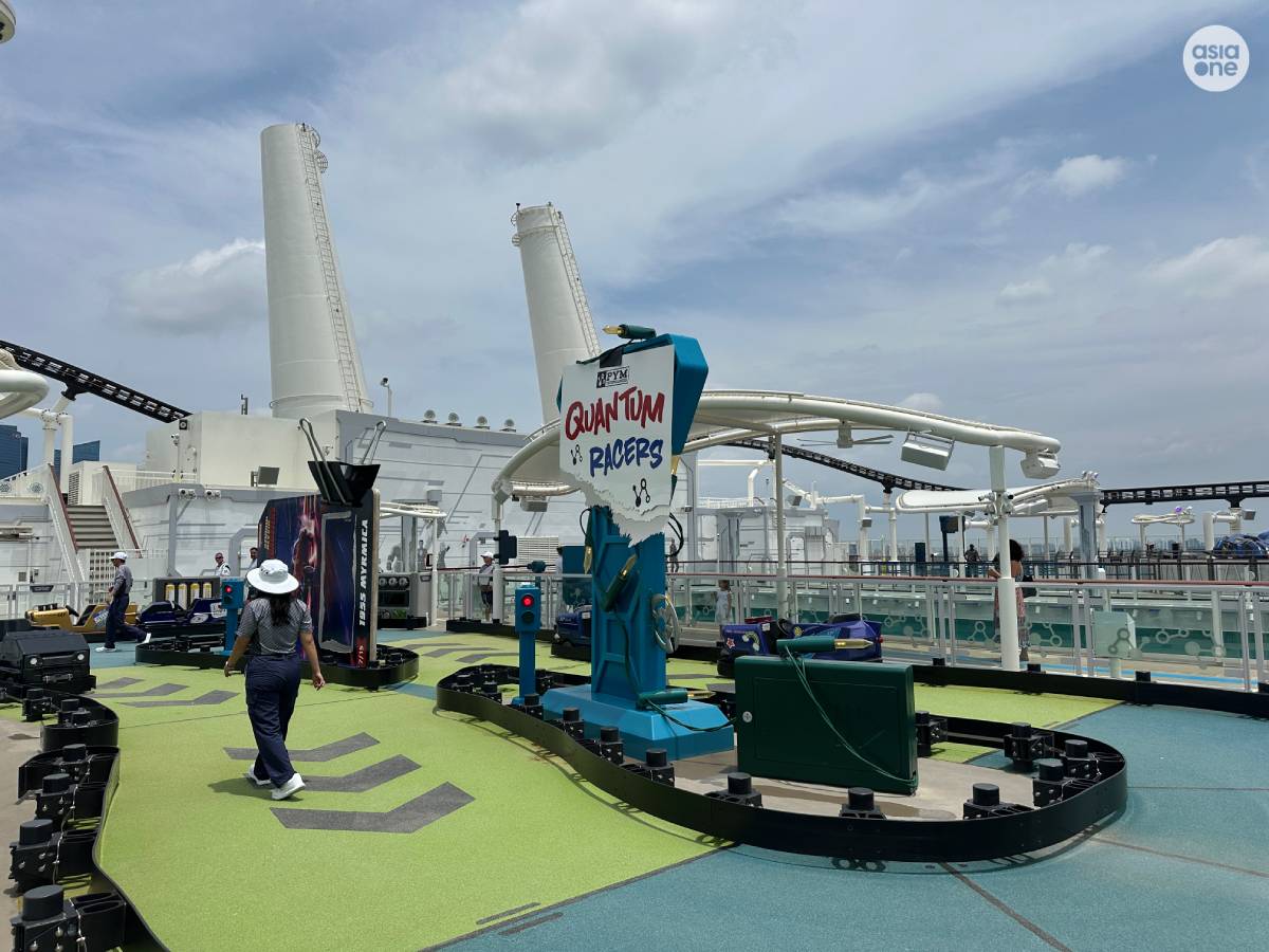 At any one time, three cars will be released onto the track. Each car fits two people, so in total, six people can enjoy the ride during each round. The track winds around the upper deck of the ship and has several twists and turns that promise sweeping ocean views.