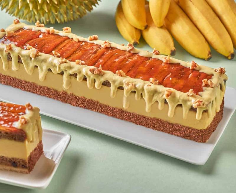 Love banana cake and durian? The D24 Banana Flambé Cake ($18 per slice, $120 for 1.3kg) brings the two together in sinful style, with a generous slab of D24 durian mousse sandwiched between fragrant layers of banana cake. For good measure, the sweet, sticky treat comes topped with caramelised banana slices and a drizzle of durian sauce. It’s the heaviest pastry of the lot this year, but we’d save special space for this one.