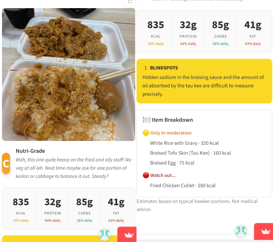 "A clinical 'high fat content' warning is easy to ignore. A localised tip like, 'Wah, a bit oily lah. Ask for less gravy next time!' hits different. It turns the AI from a judge into a helpful buddy, making the advice more palatable and certainly more memorable than a standard nutrition label," he explained.