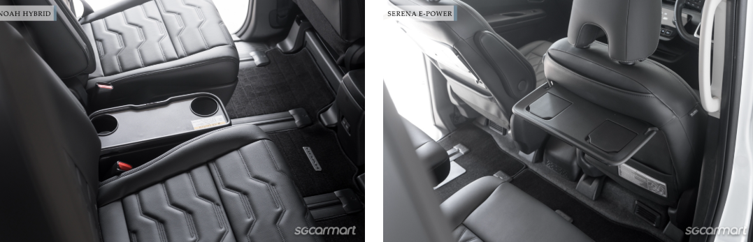 Whereas the Noah only has a sole flip-up tray table between its two captain's chairs, the Serena presents both second and third row passengers with their own tray tables (that's a total of four). Speaking of which, even the last row comes with USB-C charging ports and two cupholders on both sides; the Noah only treats occupants to cupholders here.