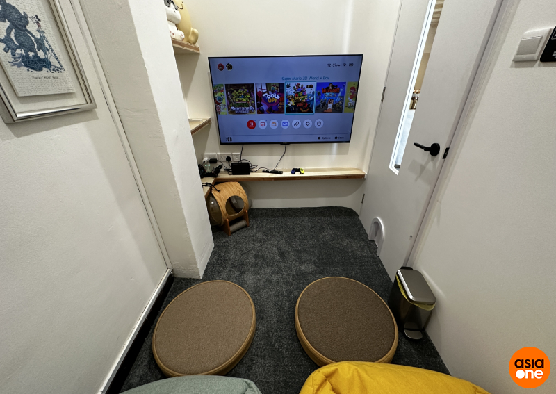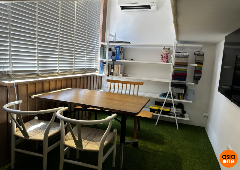You can even hold group meetings here. On the second level of the space, the balcony has been converted into a spacious, air-conditioned meeting room, complete with a television for presentations.