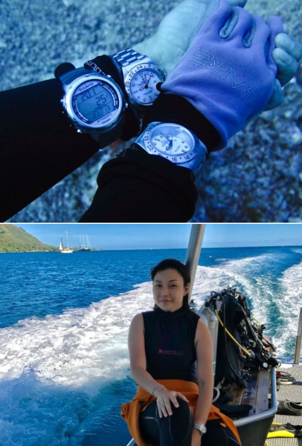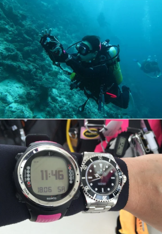 Few images embody the idea of wearing your luxury watch as well as this one: the classy, polished Stephanie Soh, co-founder of female watch appreciation community TickTockBelles, diving into deep water with her Rolex.