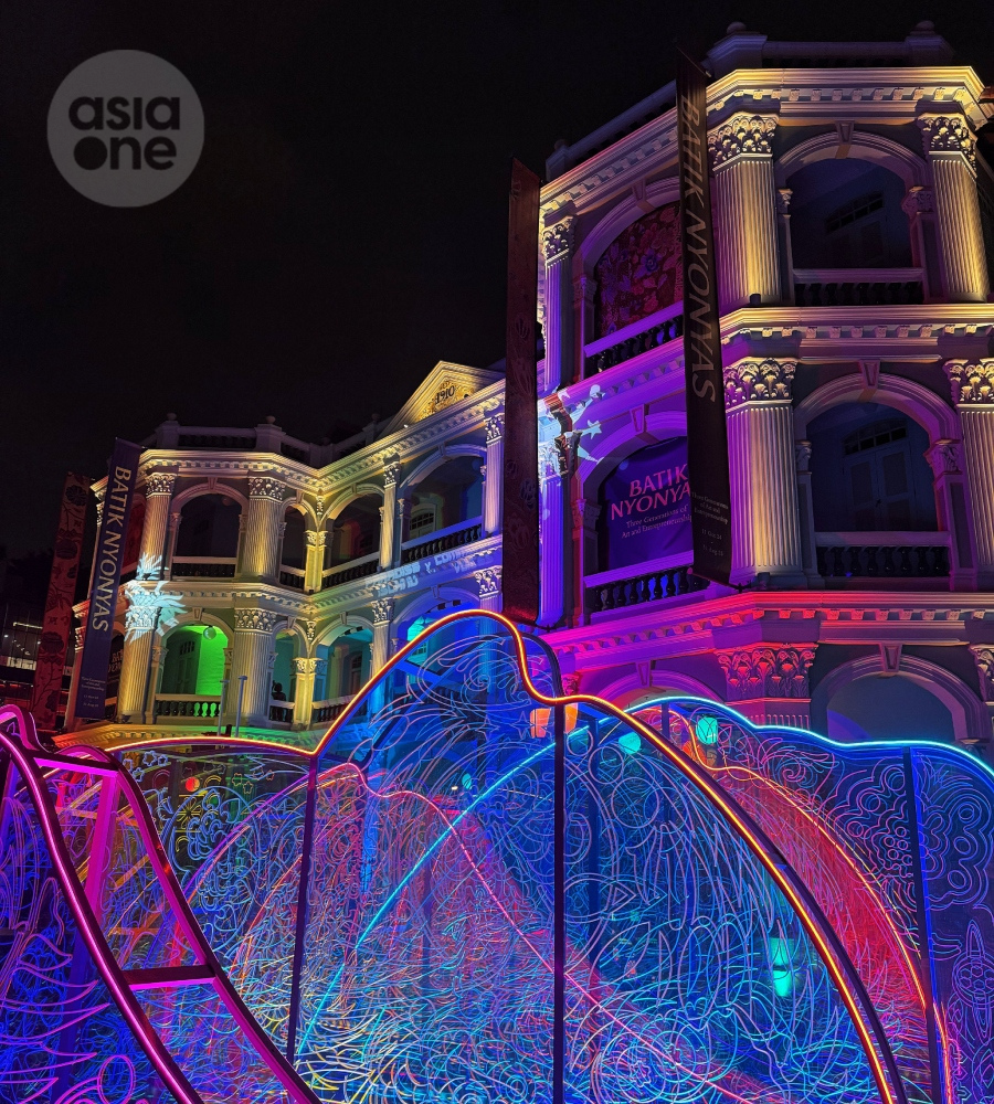 Other installations and experiences include projection mapping light-ups like Mosaic by French artist Jeremie Bellot on the facade of the National Museum of Singapore — which focuses on a theme of island navigation and exploration with historical cartographies (the art of drawing maps) and constellations while incorporating unique local touches like kebaya and batik motifs.