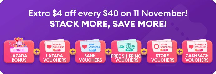 For starters, simply login to the app and collect the daily Lazada Bonus. With the accumulated Lazada Bonus, you can redeem an additional $4 off every $40 or $12 off every $200 (depending on the product), for products with the Lazada Bonus badge during 11.11.