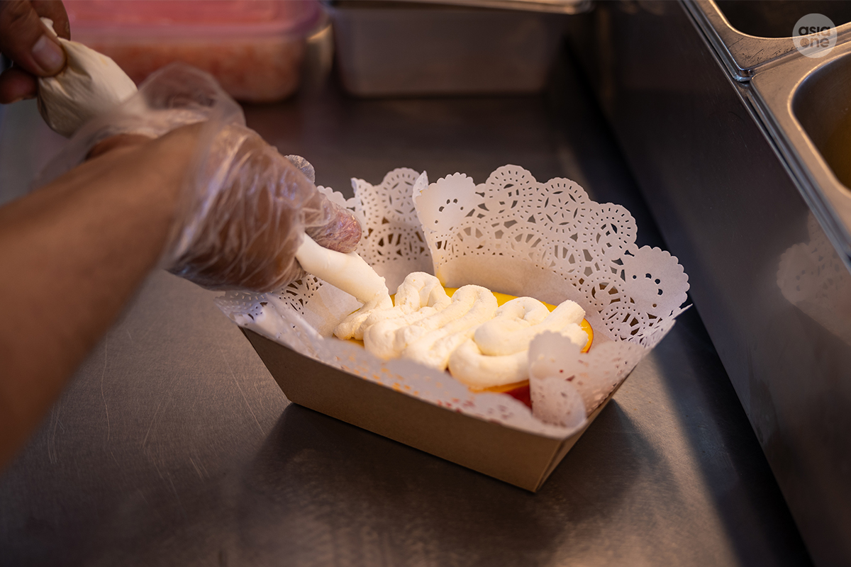 A fresh piece of mango forms the base of the dessert, which is then slathered with cream cheese piped on top, and finished with a sprinkling of popping boba and juicy pomelo. This tropical dessert doesn't just look good for the 'Gram, it is a much needed palate cleanser you need to end your food hunt with.
