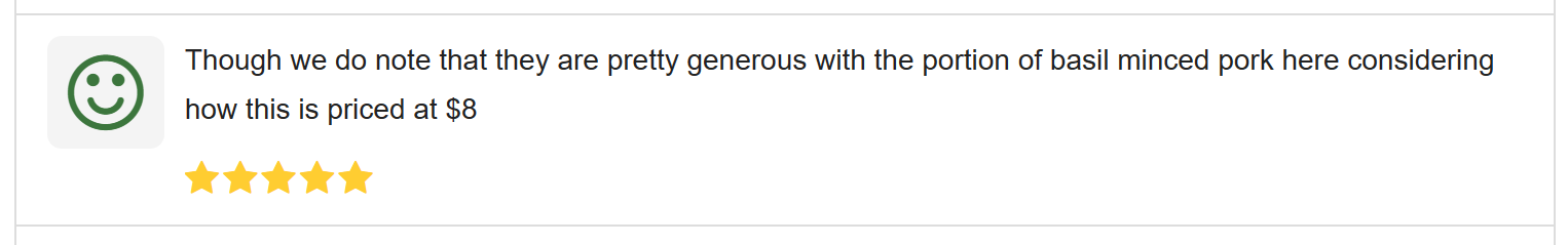 Among the variety of dishes offered by the stall, many customers seem to find the basil minced pork ($8) a noteworthy dish because of its generous portion.