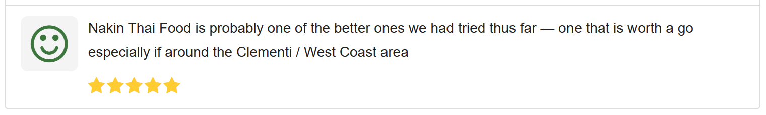 Satisfied customers who enjoyed their Thai food have gone so far as to call it "one of the better ones" that they have tried, and encourage others to check Nakin Thai out if in the neighbourhood.