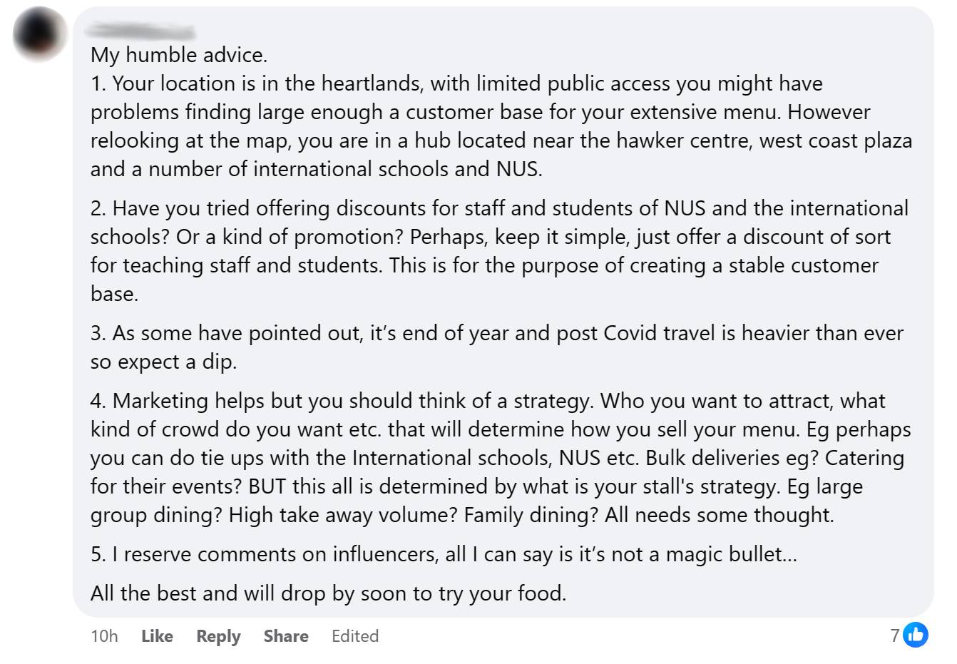 Some netizens shared their positive experiences with the stall, while there were a few who offered valuable advice to help Amita tide through the slow business season, such as sharing strategies for targeted marketing or offering discounts.