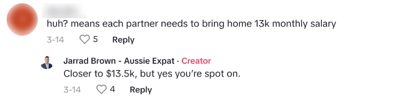 Another user agreed with Jarrad's cost-of-living breakdown, saying it was "very accurate". "Of course it will vary depending on your family needs. We spend more than double on groceries. It’s good that you included savings. I think some expats forget," the user added.