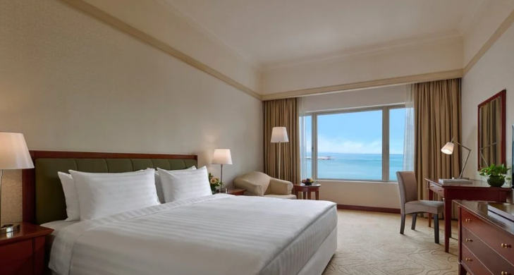 Alongside panoramic views of the ocean, Penang Hill and George Town, guests can enjoy facilities such as a massive all-day dining restaurant, a lobby lounge with live entertainment, a kids' club, an outdoor tennis court, two swimming pools including a children's pool, steam and sauna rooms, and a 24/7 gym.