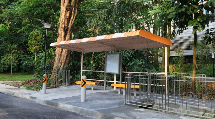 An example is a nostalgic white-and-orange bus stop, recreated along the trail near Campus Boulevard as a tribute to the former bus stop which one served residents in the area.