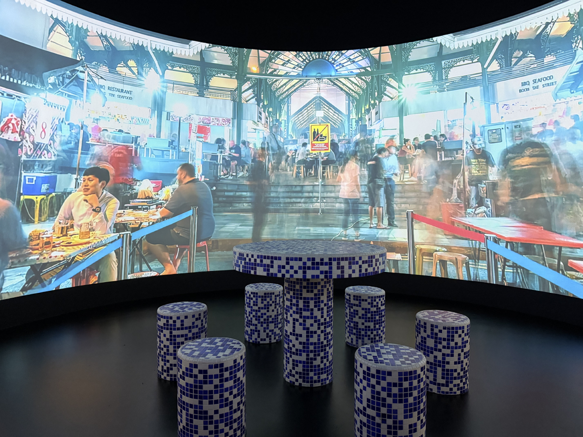 The final stop on level one invites you to sit at a familiar chess-tiled concrete table while a 300-degree curved projection charted Singapore's rise into a modern metropolis. It's a short but reflective pause before the experience shifts gears on the next floor.