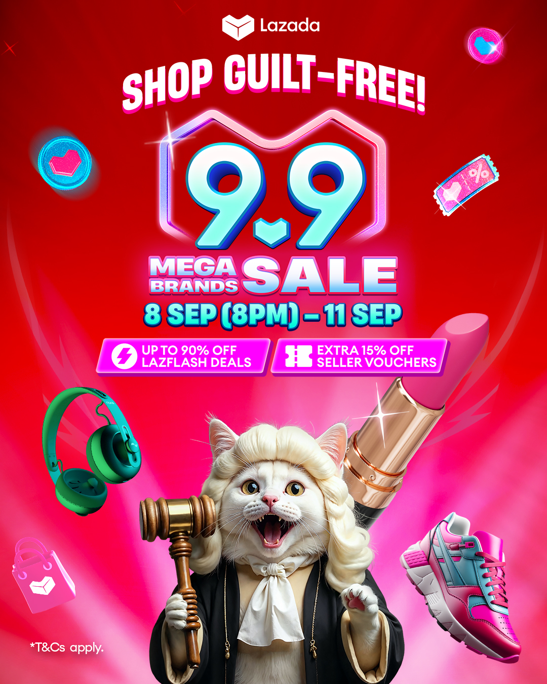 Don't forget to mark your calendars for the Lazada 9.9 Mega Brands Sale from 8pm on Sep 8 to 11, and head over to the Lazada website to start filling your cart now!
