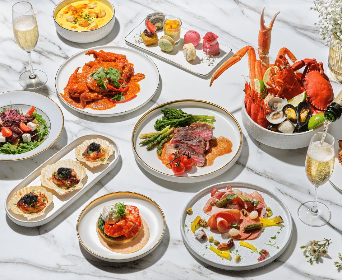 The buffet showcases a tantalising array of premium roasts and wok-kissed Asian-inspired dishes, including Sea Urchin & Aburi Scallop Tartare, Roast Turkey, Poached Tarragon Butter Boston Lobster, Indonesian Curry Crab, and Braised Abalone Noodles.