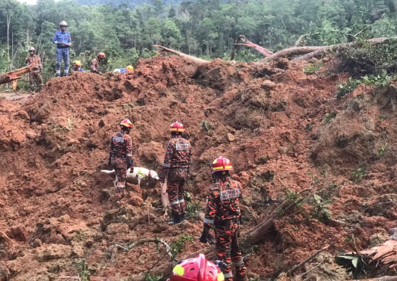 A total of 135 responders and seven rescue dogs resumed scouring through thick mud and downed trees around 8.30am with the assistance of excavators, Norazam told reporters.