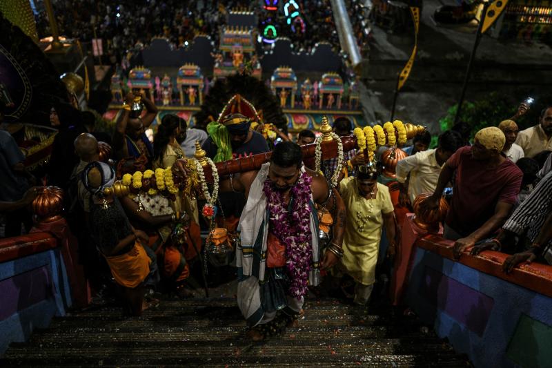 Massive crowds thronged the Batu Caves complex outside Kuala Lumpur as incense and drums filled the air.