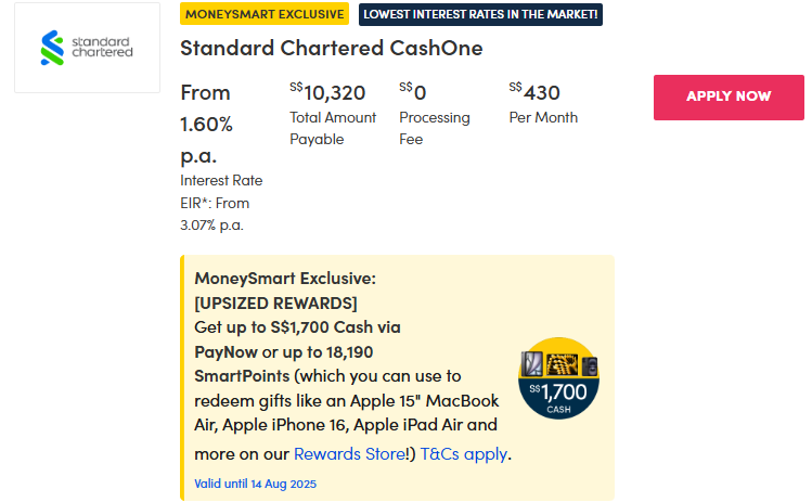 Apply for a Standard Chartered CashOne loan via MoneySmart to get attractive gifts like: