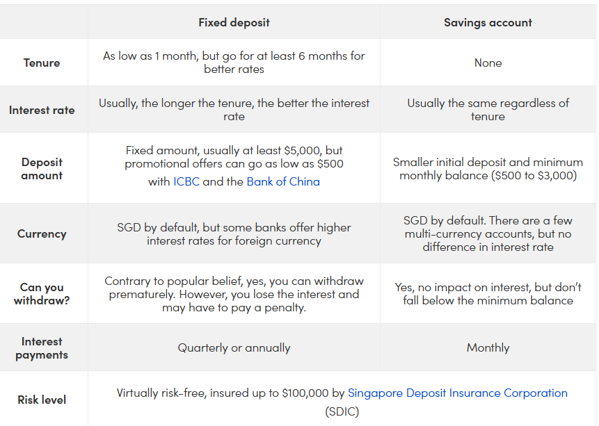 Here are the differences between fixed deposits and savings accounts at a glance: