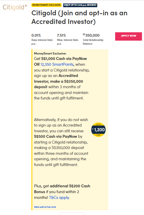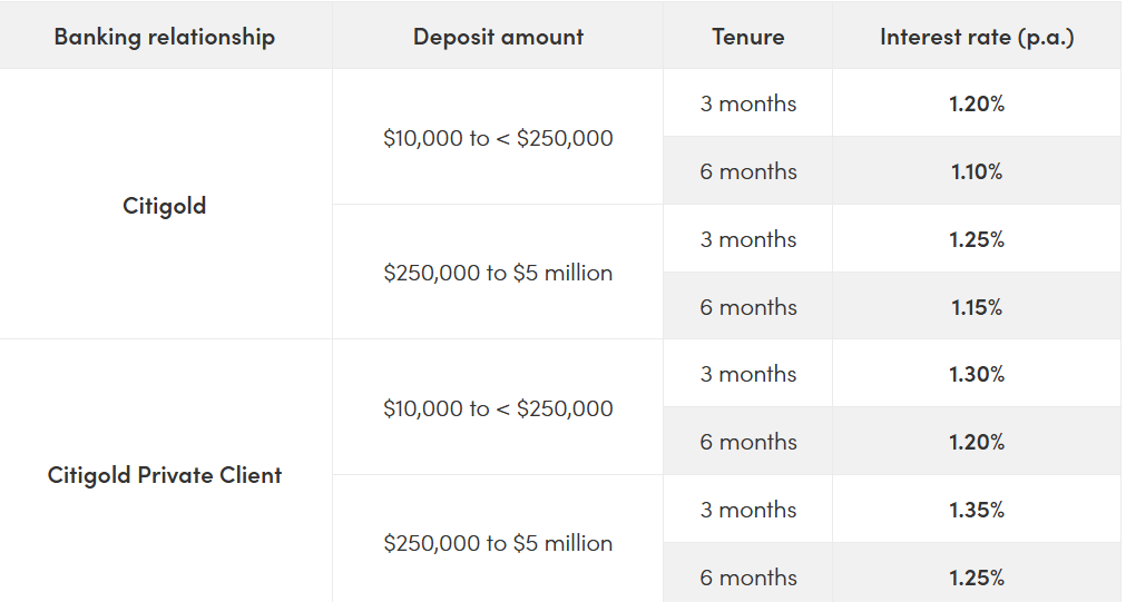 Note: The rates above are accurate as of 10 Feb 2026. Do check Citibank's fixed deposit promotion page for the latest rates in case Citibank makes changes.