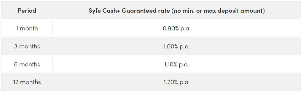 Rates accurate as of 10 Feb 2026. Do check the Syfe Cash+ Guaranteed page for the latest rates.