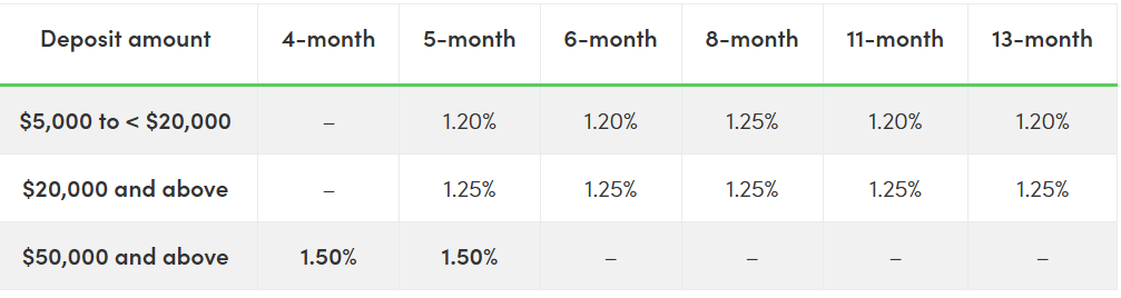 If you don't have $50,000, you could also access 1.25 per cent p.a. with $5,000 if you can lock your money away for eight months.