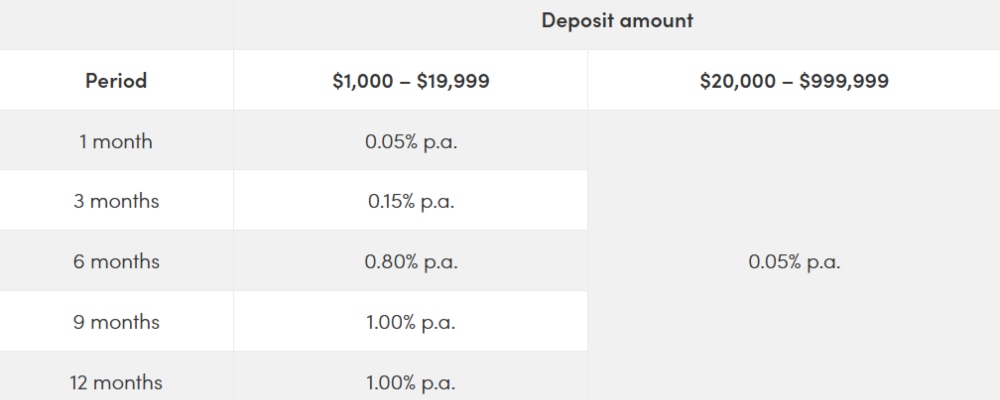 Add 0.05 per cent p.a. to each of the rates above if you are also an Accredited Investor.