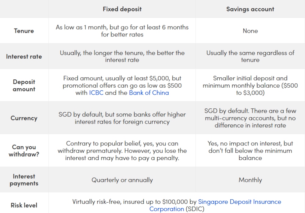 Here are the differences between fixed deposits and savings accounts at a glance: