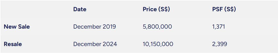 With this $10.15 million resale which translates to $2,399 psf, they achieved a staggering profit of $4.35 million, reflecting a capital gain of 75 per cent. On an annualised basis, this equates to an impressive 15 per cent return per year, underscoring the lucrative potential of well-located, premium properties in Singapore.