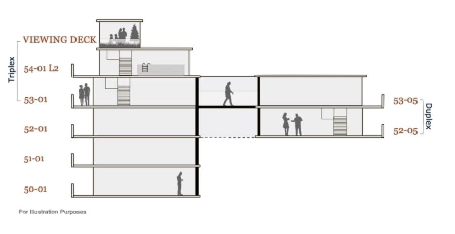 The five penthouses have a combined 24 bedrooms and a 25m rooftop pool, and occupy levels 50 to 54. The largest penthouse in the collection is a 11,012 sq ft triplex or three-storey unit.