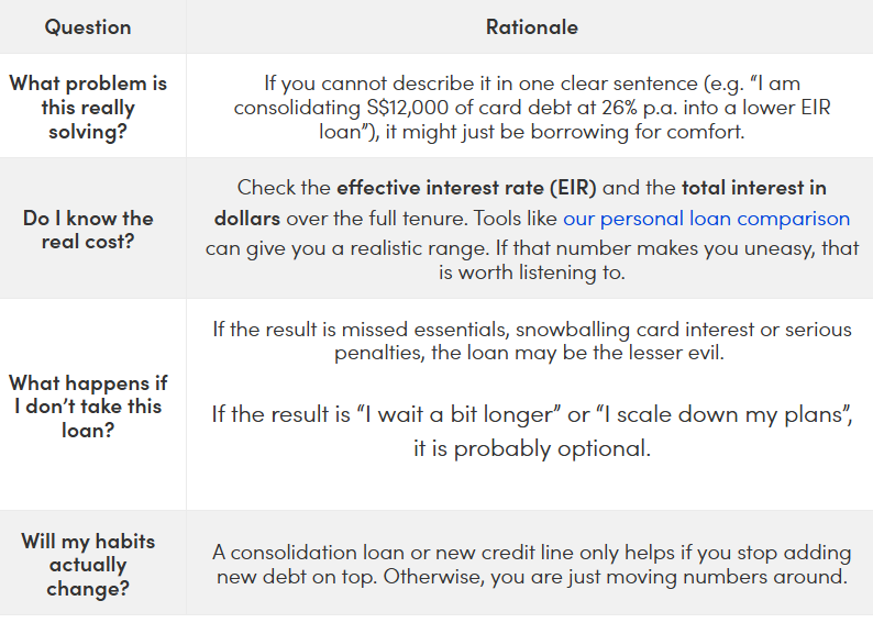 For a sense of what you might face, many bank personal loans have effective interest rates (EIR) somewhere in the 6-12 per cent p.a. range, depending on your profile and tenure. That is not cheap, but it is still usually lower than rolling unpaid charges or penalty fees month after month.