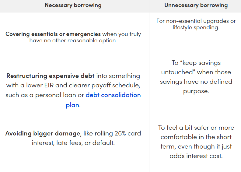 If you are using a loan to pay for something essential, like medical treatment, a critical car repair, or keeping up with basic bills so you do not default, that is very different from borrowing for a holiday or a gadget.