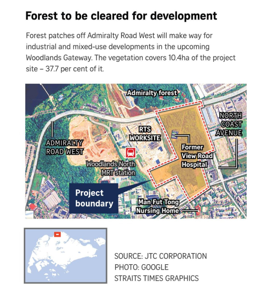 Even Admiralty forest - the nearest forest plot to the site - is slated for development into a business park, according to the URA's Master Plan 2019, which guides developments in Singapore for the next 10 years to 15 years.