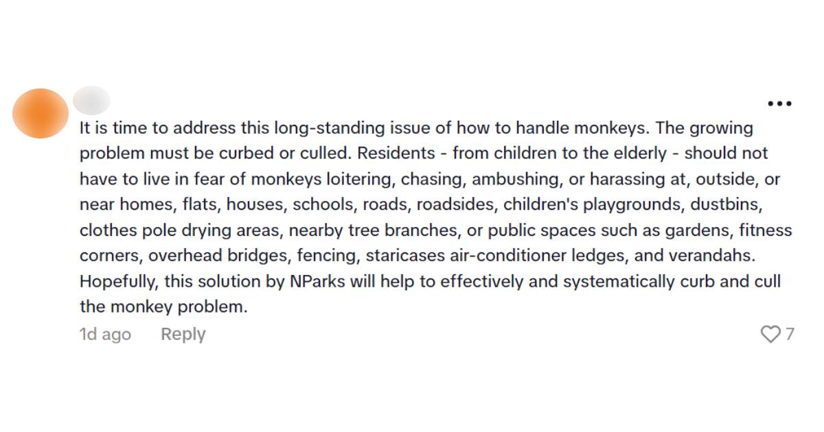 Others shared their own experiences dealing with monkeys near their homes, such as food snatching, and expressed appreciation for NParks' efforts.