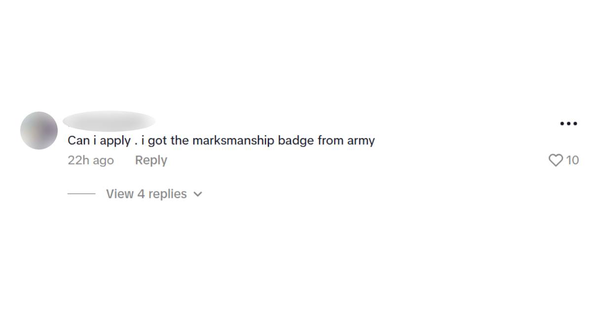 Others, however, found light in the situation. One user wrote, "Best job ever. Where do I apply?" while another joked, "Can I apply? I've got marksmanship badge from army."