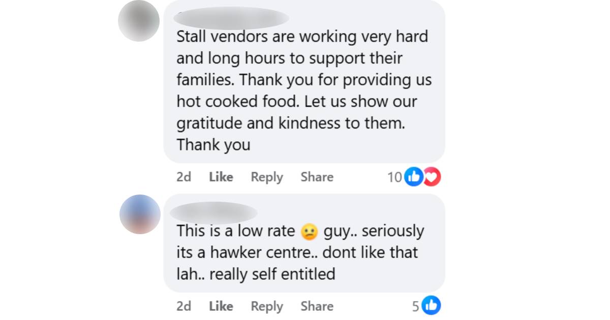 Netizens weighed in on the incident, with some calling out the customer for being self-entitled, while others expressed appreciation for the hard work of local hawkers.