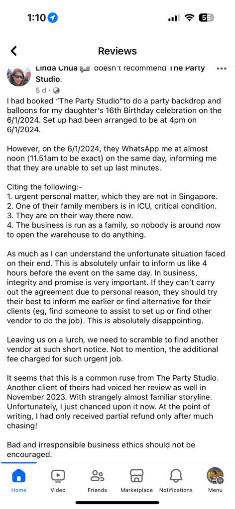 Stomp contributor Iirah shared with Stomp that she had reached out to The Party Studio on Jan 6 to put up decorations for a birthday party scheduled to be held on Jan 13 at 6pm.
