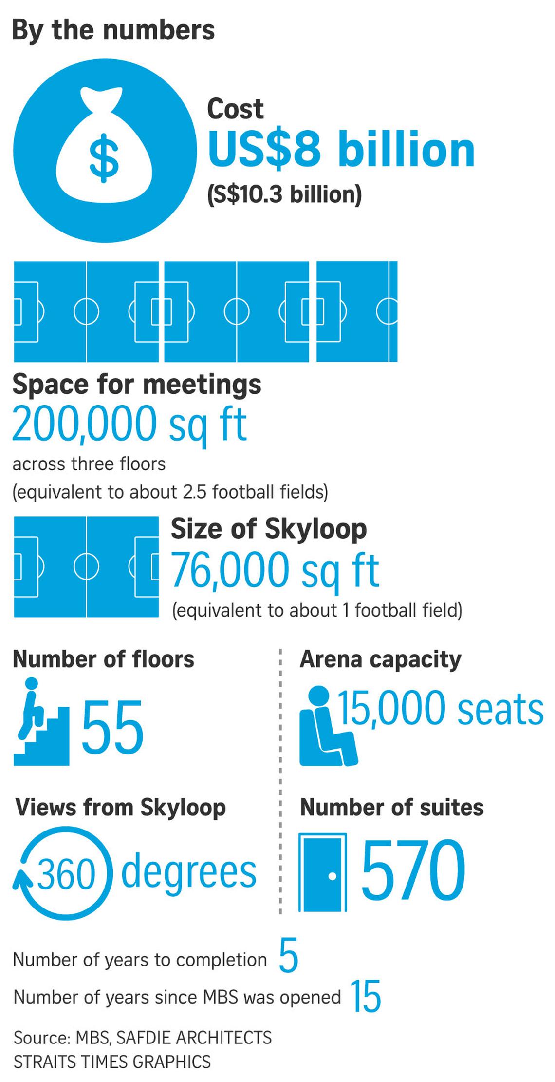 He noted that the Las Vegas Sands development will both refresh Singapore's skyline and introduce new attractions, including the rooftop Skyloop and the 15,000-seat arena for world-class concerts and performances.