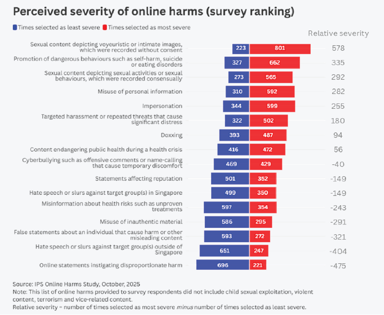 PUBLISHED ONOctober 22, 2025 10:45 AMBYBhavya RawatAlmost three quarters of Singaporeans are likely to find online harms more severe if they target vulnerable victims or have a considerable impact on them, according to a multi-phase online safety study conducted by the Institute of Policy Studies (IPS).