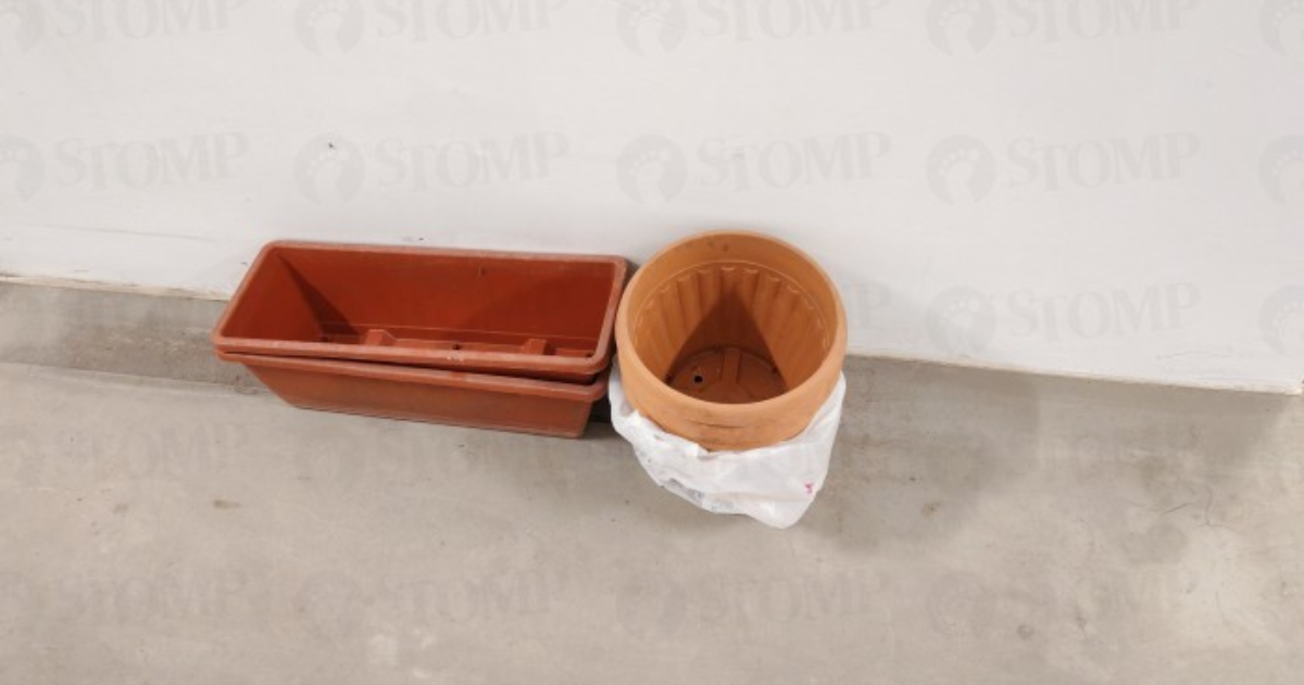 A Sengkang resident was dismayed when he found soil and flower pots scattered in front of his unit after returning from a short holiday.