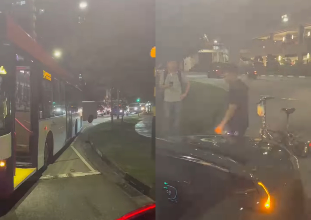 Unhappy cyclist blocks Sengkang zebra crossing, causing traffic jam