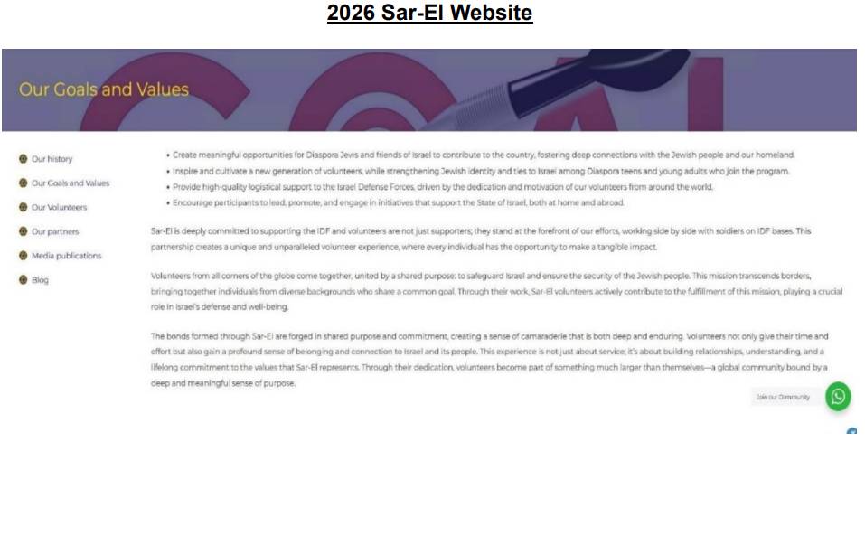 However, the ministries noted that Sar-El's current website states that Sar-El is "deeply committed to supporting the IDF", and its volunteers "work side-by-side with soldiers on IDF bases", with their "volunteer service contribut[ing] directly to the security of Israel".