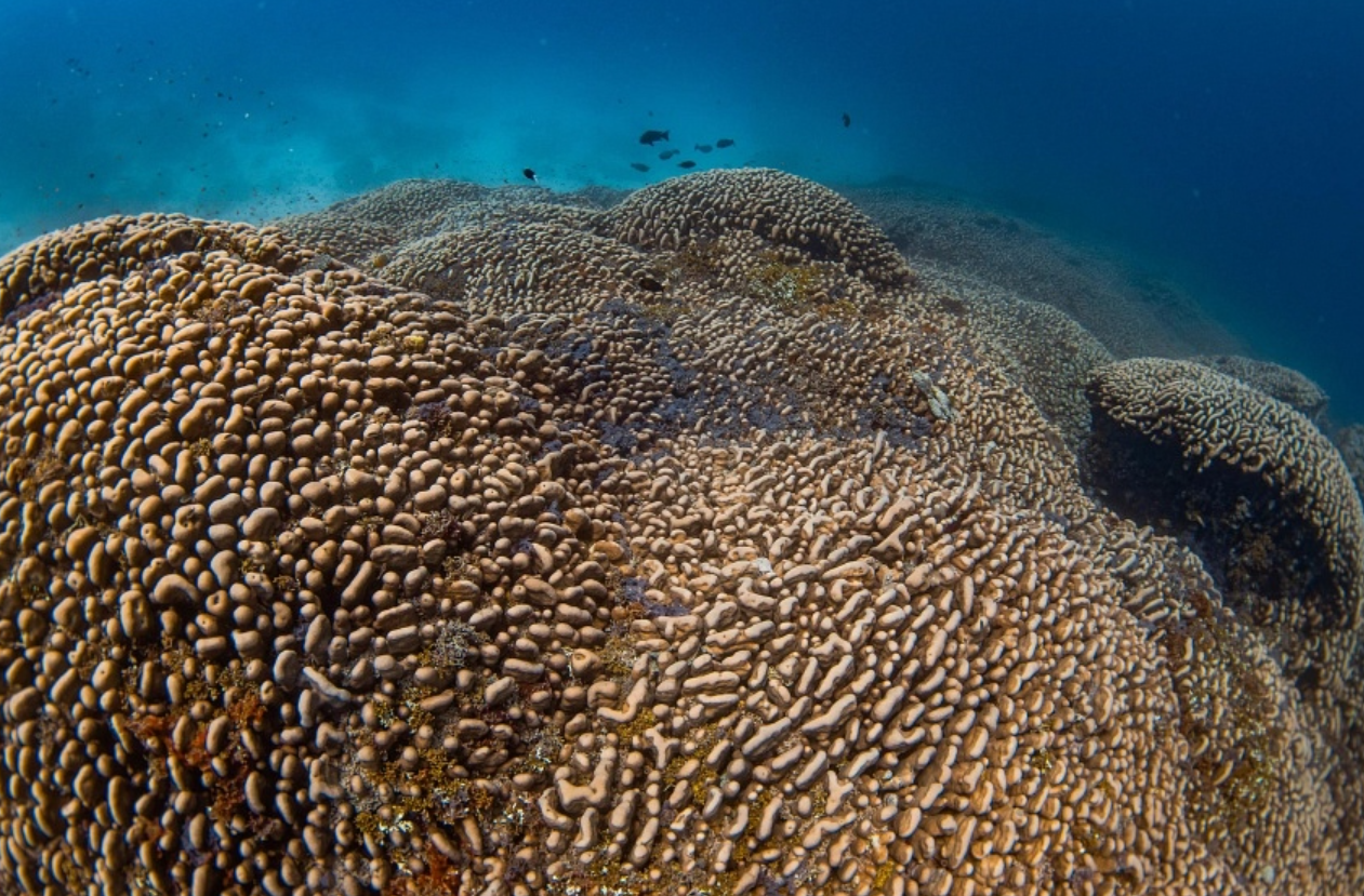It comprises a single species, Pavona clavus, and its huge size provides shelter and breeding grounds for fish, crabs, shrimp and other creatures. It is different from a reef, which is a network of many coral colonies and species.